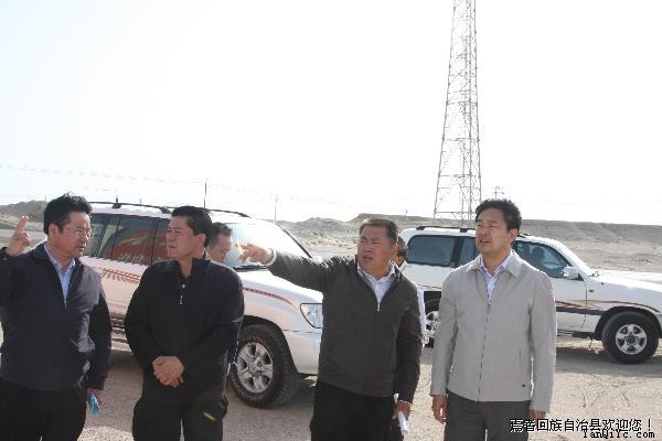 州委书记彭家瑞(右一)、副州长马成(左二)在县委书记胡雁(右二)和县委副书记、县长席文海(左一)的陪同下到焉耆廊坊产业园调研