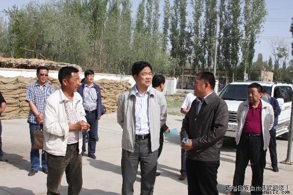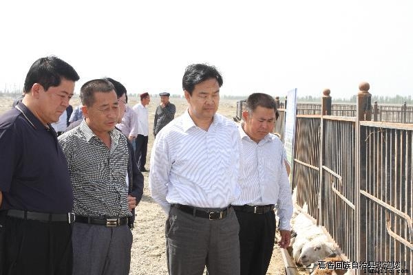 州委书记彭家瑞(右二)、副州长马成(左一)正在查看我县开都养殖繁育农民专业合作社建设情况