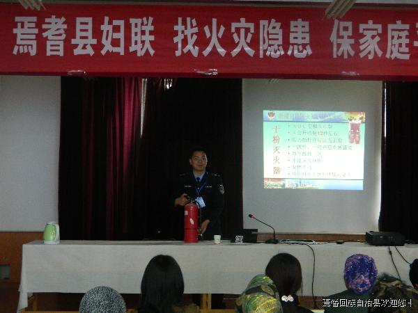 为了进一步增强消防安全意识,了解家庭火灾的主要原因并进行有效预防,学会火灾疏散自救互救方法和技术,将所学防火灭火知识传授给家庭成员,切实实现“教会一个成员,保障一个家庭,幸福整个社会”的目的。4月20日,焉耆县妇联分别在县妇联三楼会议和友好社区举办了2场消防安全知识讲座,邀请了新疆宜玖防火知识宣传中心消防讲师黄小龙同志为各族妇女群众讲解消防安全知识。县妇联全体干部、焉耆镇部分社区居民、社区妇联主席等各族妇女群众100余人参加了此次培训。