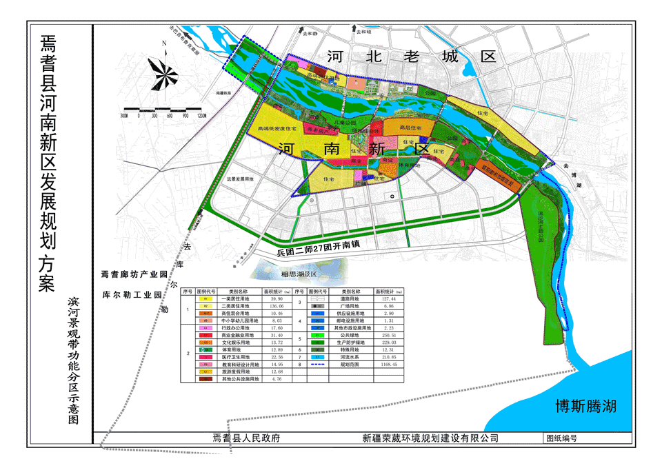 位于开都河以北老城区解放西路以南、开都河以北、开都河西大桥以西、和库高速公路以东沿河区域,现状为县城规划用地及居民居住用地,总面积约150亩,用地性质为商业、居住,分为三个地块,其中县委党校两侧地块为高密度商住小区,其他沿河地段为低密度高端住宅。