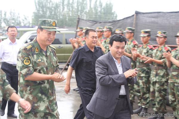 7月8日,副州长艾克白尔·阿不都卡的尔一行冒雨来我县看望慰问坚守在维稳一线的武警官兵,送上了两万元慰问金和羊肉、瓜果。