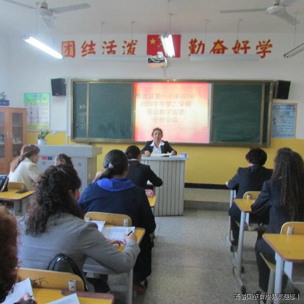 9月15日下午焉耆县第一小学召开2014-2015学年第二学期双语教学期末成绩分析会,会议由双语负责人主持,全体双语教师及主管教学的副校长参加了会议。