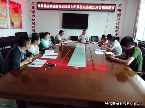我县残联创建自治区级文明县提名县领导小组办公室严格按照工作要求及工作实际,科学编排试题内容,明确了测试对象、形式和时间。在测试之前,对全体干部职工再次进行了创城知识培训,使干部职工熟悉创城知识。