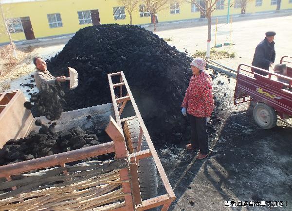 1115日,焉耆县良种场工作人员在给低保户、困难户发过冬煤。