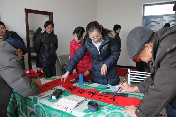 送春联活动是县委老干部局学习宣传贯彻党的十八大精神组成部分,也是深入开展老干部志愿服务活动的重要载体。这一活动也是我县老干部发挥余热、奉献社会,助推新农村建设的重要途径,是老干部发挥所长,把中华文化送到农村基层,促进和谐社会建设的重要平台。 参加本次活动的老干部中,年龄最大的83岁且感冒在身,一听说要到基层送春联顾不了家人的阻挡坚持前往。一路上不停地在说春节即将来临我们一定要把欢乐和祝福送到基层群众当中去。短短半天的时间一幅幅立意深远、寓意吉祥的春联从老干部们笔端流淌而出。前来领取春联的村民赞口不绝,当领到属于自己的春联时乐不自禁,反复诵读着春联上的吉祥话语笑得合不上嘴。大家都对老干部们不畏严寒、不计年高、不辞辛劳,坚持走进农村送春联送文化表示十分的感谢。当天,连同老干部们提前写好和现场书写的春联共送出210余幅,寒冷的冬天因老干部们送来的春联与祝福而充满温暖。 |