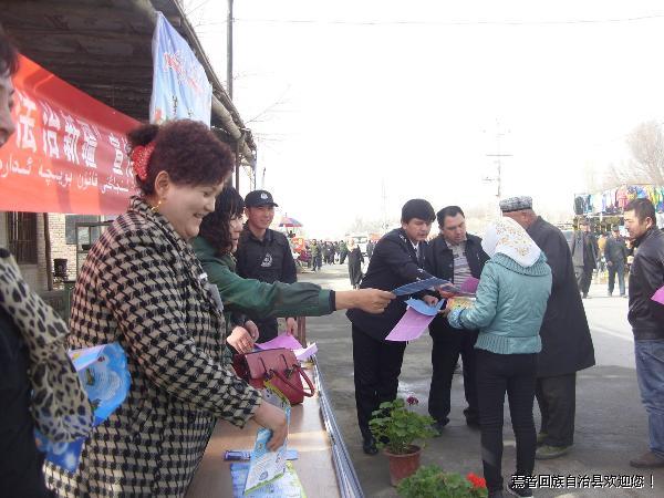 3月20日上午,四十里城子司法所联合镇派出所,水管站,兽医站,林管站,妇联,农业技术推广服务站等部门在四十里城子镇老街开展了“法治新疆”宣传教育活动。